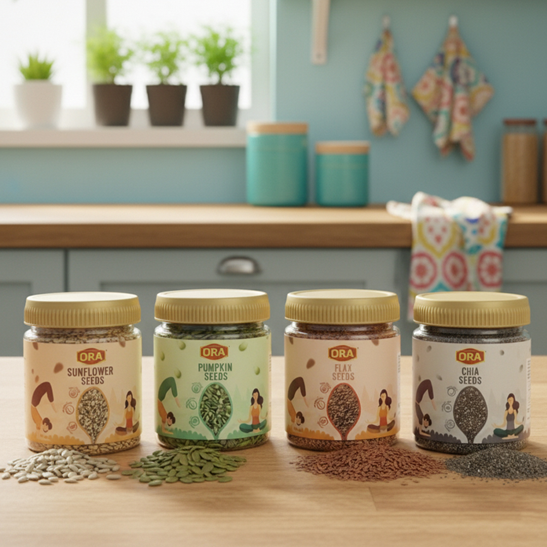 The Sresth Ora Super Seed Combo brings together four of nature’s most nutrient-dense seeds in one power-packed combo — Pumpkin Seeds, Flax Seeds, Chia Seeds, and Sunflower Seeds. Loaded with omega-3, plant protein, antioxidants, and fibre, this wholesome mix transforms everyday meals into a powerhouse of nutrition.